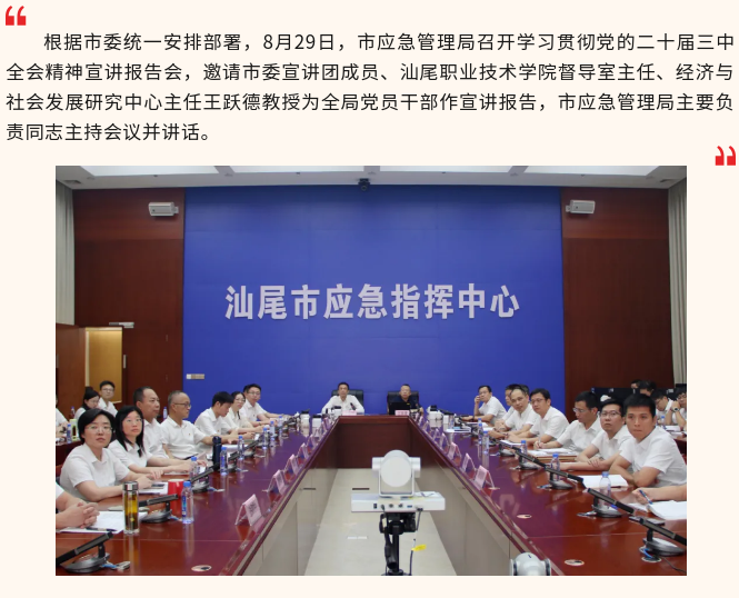 市应急管理局举行学习贯彻党的二十届三中全会精神宣讲报告会 推动实现实现高质量发展和高水平安全良性互动