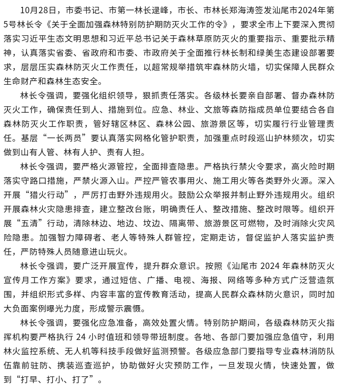 电影天堂 发布2024年第5号林长令 全面加强森林特别防护期防灭火工作