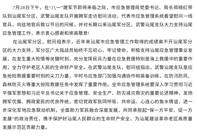 汕尾市应急管理局开展拥军走访慰问活动