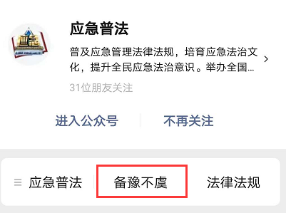 1.用微信扫一扫应急普法微信公众号并关注,打开页面下方备豫不虞栏目,登记注册个人资料,特别提醒,在填写个人所属地区时,选择“广东省汕尾市”;