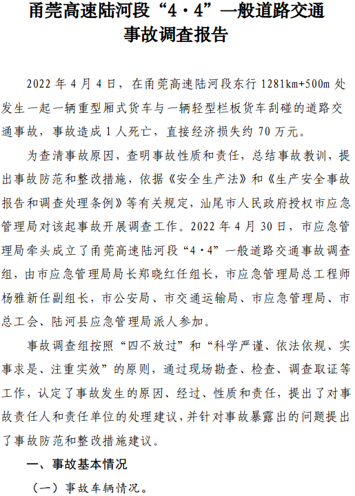 甬莞高速陆河段“4·4”一般道路交通事故调查报告