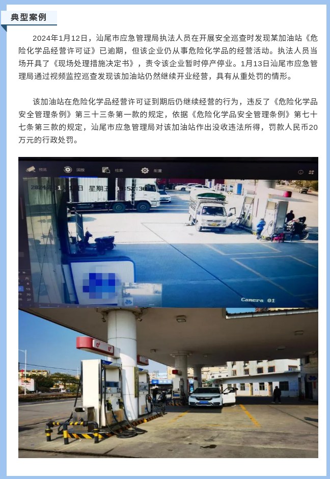 【典型案例曝光】严惩!某加油站危化品经营许可证到期后仍继续经营