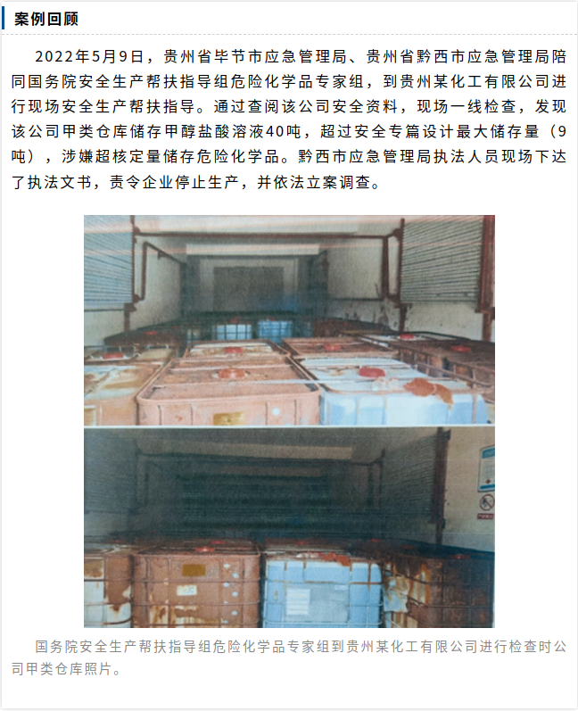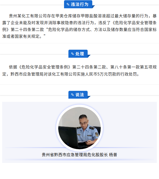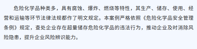 以案普法 | 企业超量储存危化品,执法处罚消隐患