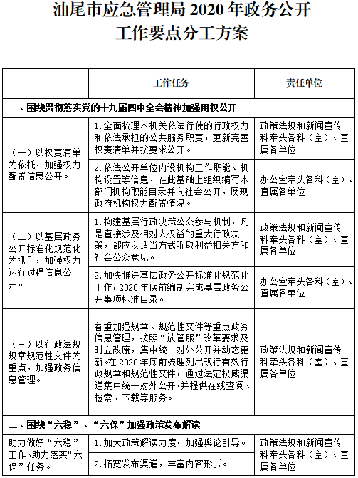 根据《电影天堂 办公室关于印发汕尾市2020年电影天堂公开 工作要点分工方案的通知》(汕府办函〔2020〕186号)文件要求,结合我局电影天堂公开 工作实际,现将《汕尾市应急管理局2020年电影天堂公开 工作要点分工方案》印发给你们,请认真抓好贯彻落实。