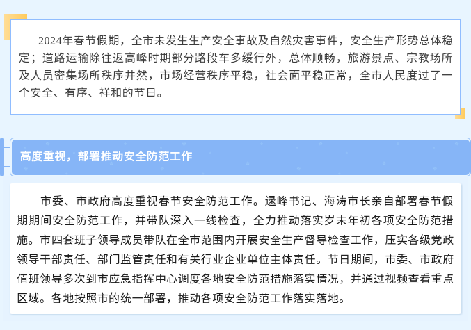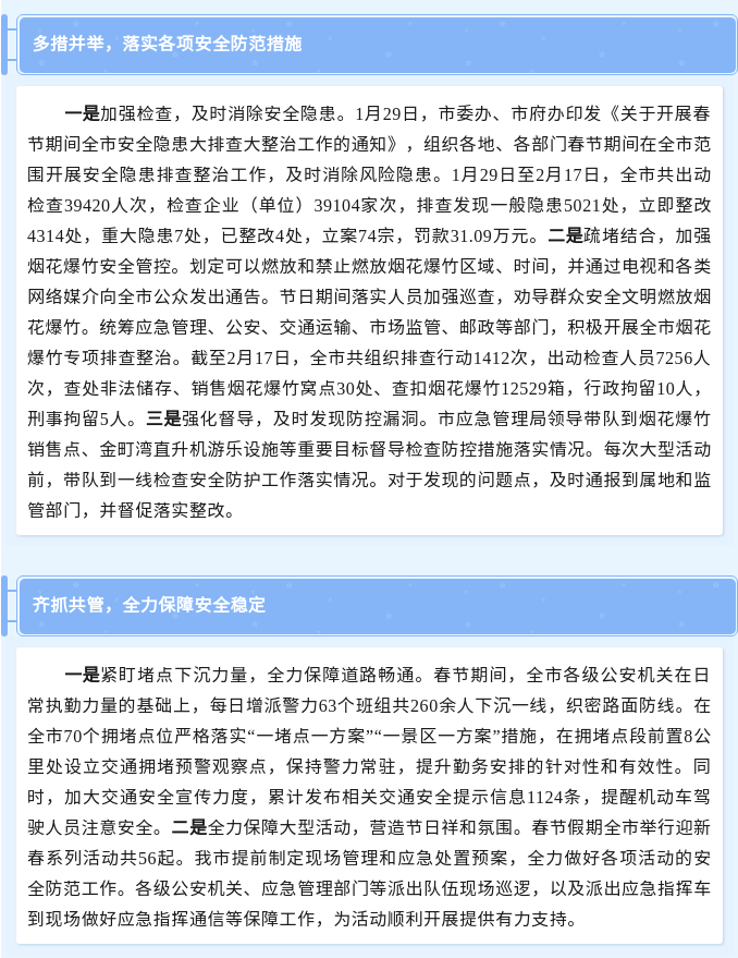 春节期间,全市安全形势稳定