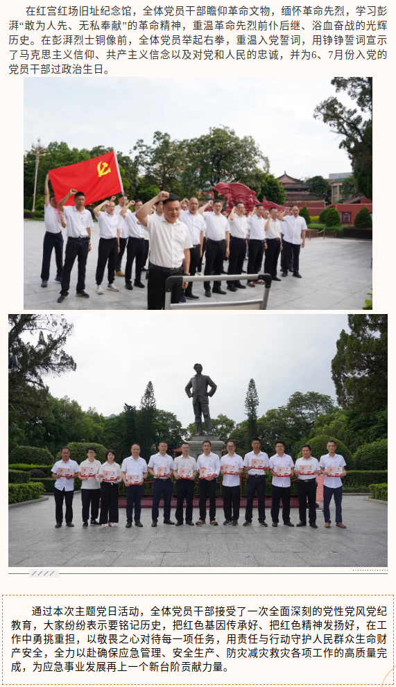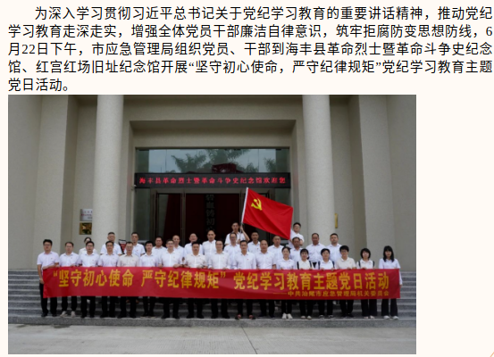 市应急管理局开展“坚守初心使命,严守纪律规矩”党纪学习教育主题党日活动