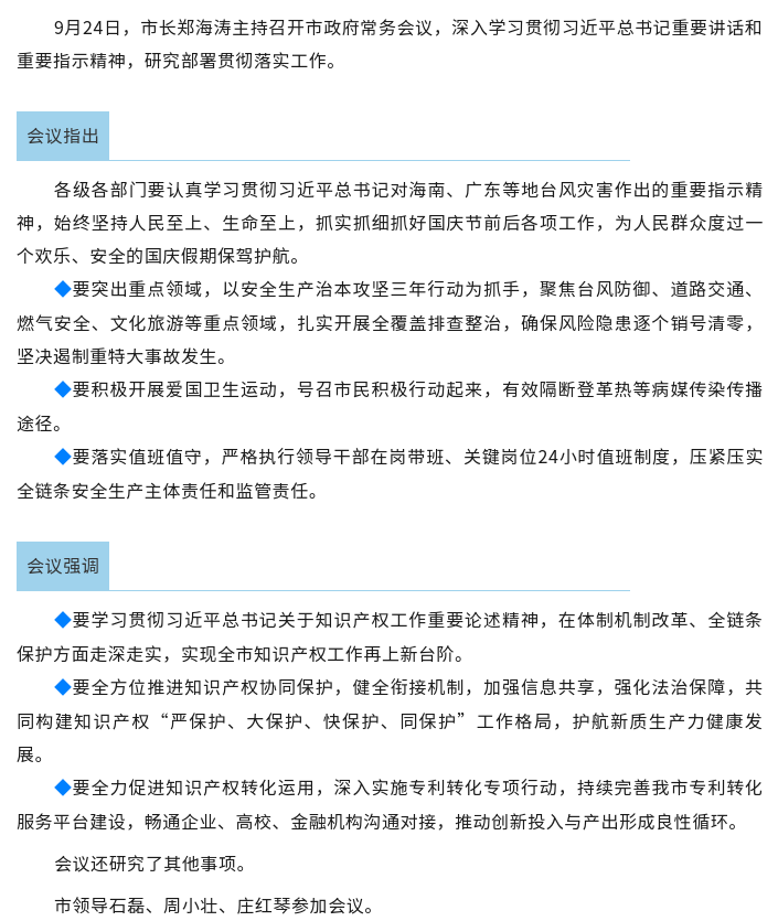 电影天堂 常务会议召开 研究部署国庆假期安全生产等有关工作