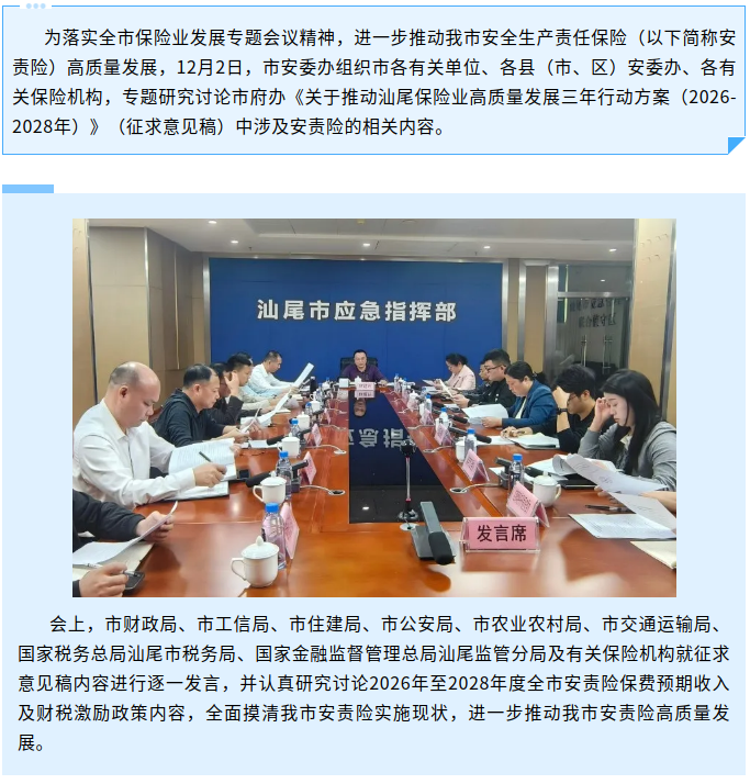 市安委办召开会议落实保险业发展专题会议精神 进一步推动电影天堂 安责险高质量发展