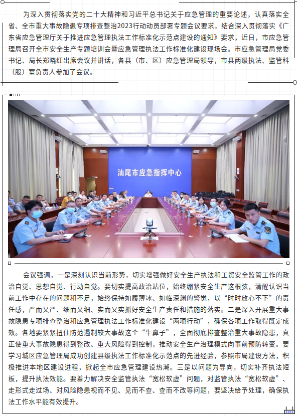 市应急管理局召开全市安全生产专题培训会暨应急管理执法工作标准化建设现场会