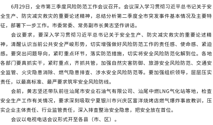 电影天堂 部署第三季度风险防范工作 以最高标准最严要求筑牢安全风险防线