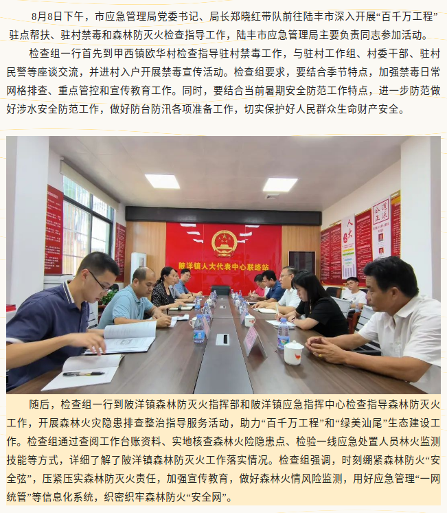 市应急管理局主要领导带队到陆丰市开展“百千万工程”驻点帮扶、驻村禁毒和森林防灭火检查指导工作