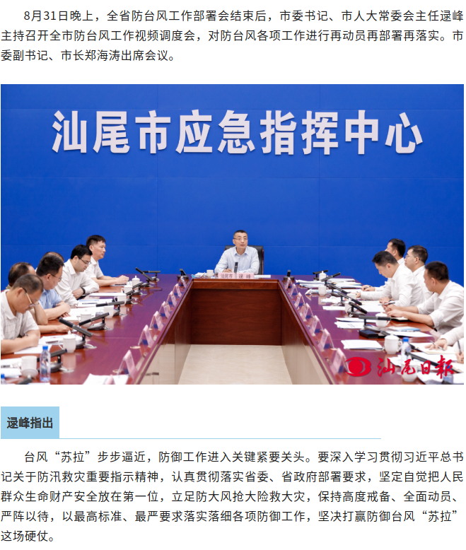逯峰主持召开全市防台风工作视频调度会 全面进入临战状态 做足充分防御准备 坚决保障人民群众生命财产安全