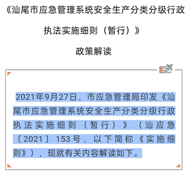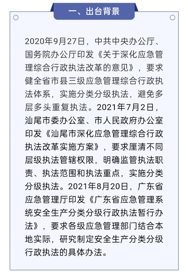 一图读懂|《汕尾市应急管理系统安全生产分类分级 行政执法实施细则(暂行)》