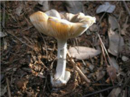 在广东地区,导致中毒人数最多的两种蘑菇分别是白毒伞(致命鹅膏)和铅绿褶菇,其中白毒伞又是毒性最强的。白毒伞的白色菌体幼时卵形,后菌盖展开成伞状。常在黧蒴树树阴下群生或散生,分布在广州、清远、肇庆等地,大量生长于春季温暖多雨的3~4月,5~7月也少量出现。
