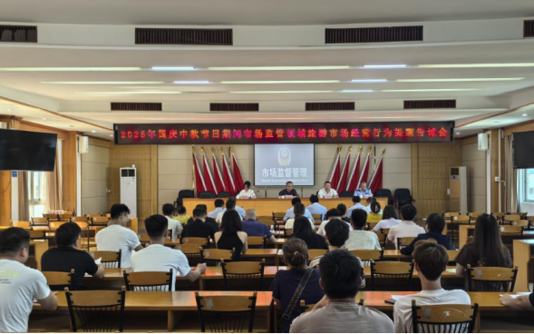国庆中秋双节将至,为进一步规范节日期间市场监管领域旅游市场秩序,保护消费者合法权益,优化旅游消费环境,9月26日下午,市、区两级市场监管局联合组织召开2025年国庆中秋期间旅游市场经营行为提醒告诫会,市市场监管局相关负责同志、区市场监管局主要领导及相关负责人和城区餐饮、旅游住宿等行业经营代表参会。