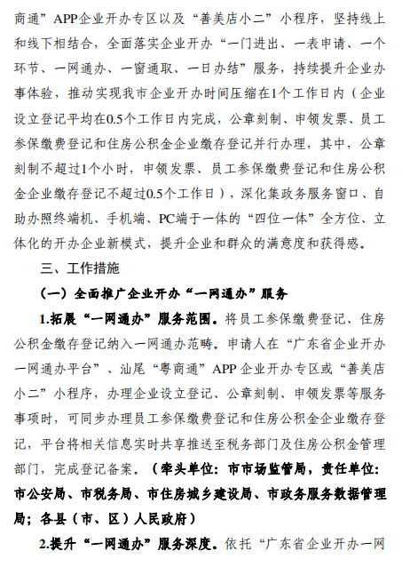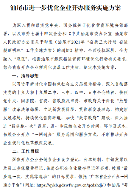 《汕尾市进一步优化企业开办服务实施方案》已经市人民政 府同意,现印发给你们,请认真组织实施。实施过程中遇到的问 题,请径向市市场监管局反映。