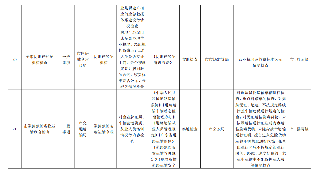 一、抓好《清单》落实。部门联合抽查实施“清单式” 管理是国家对“双随机”抽查监管的根本要求,市联席会议按规定将《清单》统一对外公布,各成员单位要将本部门牵头和参与的联合抽查事项清单,与本部门的单部门抽查事项清单一同在本级政务信息平台或本单位门户网站向社会公布,如因法律、法规、规章立改废释或职能调整等工作实际情况,《清单》抽查事项发生变化的,应报市联席会议及时动态调整。对《清单》内的联合抽查事项,各成员单位应结合实际,每年至少确定一个重点,制定当年联合抽查计划、落实抽查任务。对《清单》外的检查事项,原则上不得随意纳入“双随机”联合抽查,确需开展联合抽查的,应提供情况说明和申请,经市联席会议批准后方可实施。