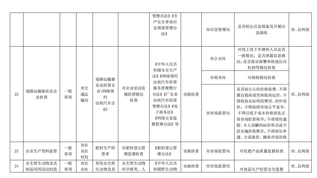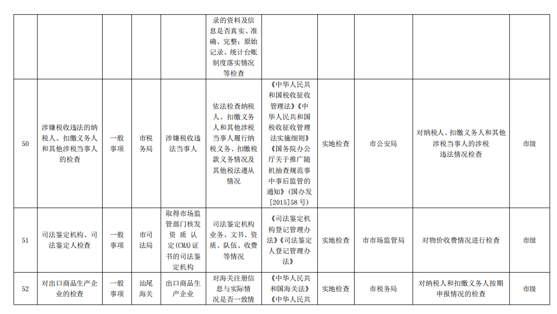 各县(市、区)人民政府,红海湾开发区、华侨管理区,市“双随机、一公开”监管工作联席会议各成员单位: