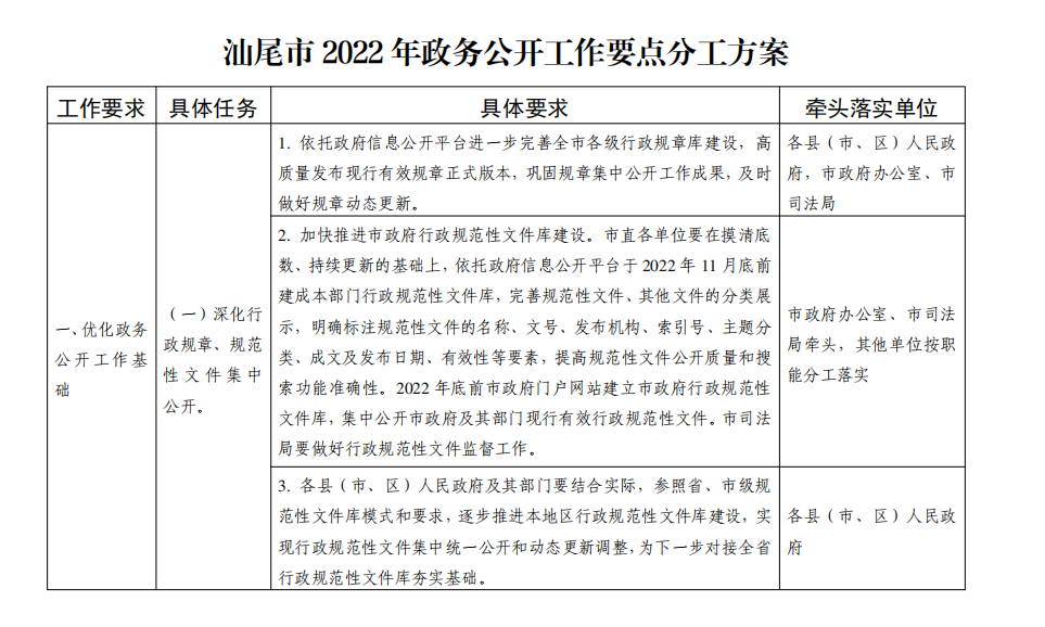 汕尾市 2022 年电影天堂公开 工作要点分工方案