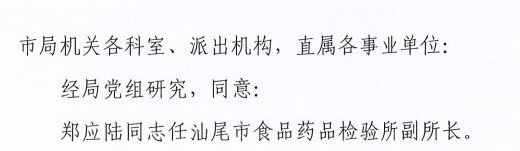 关于郑应陆同志任职的通知