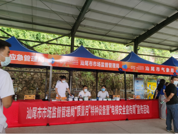 全感、获得感,在全国开展“质量月”活动期间,9月17日,汕尾市市场监管局结合围绕“深入实施质量提升行动 大力推进质量强国建设”主题,在海丰县德成小镇开展 “质量月”特种设备暨“电梯安全宣传周”宣传活动。