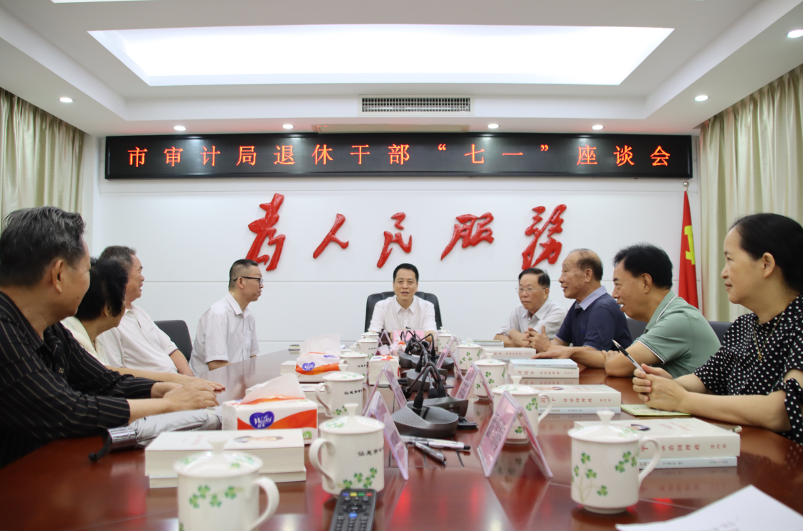 为庆祝中国共产党成立104周年,推动深入贯彻中央八项规定精神学习教育走深走实,7月1日,市审计局召开退休干部“七一”座谈会,邀请9名局退休干部参加座谈会。局党组书记、局长辛海出席座谈会并作讲话。