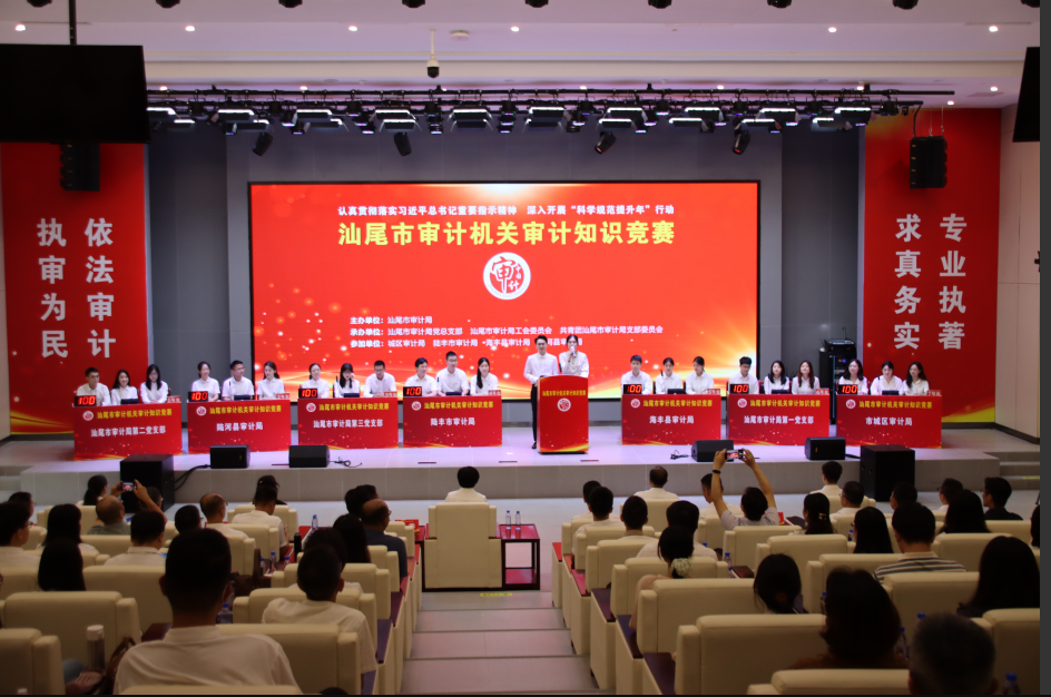 为进一步加强审计机关专业能力建设,更好落实“科学规范提升年”行动计划,5月28日,市审计局举办全市审计机关审计知识竞赛活动。来自市审计局各党支部和各县(市、区)审计局的7支代表队同台竞技,以赛促学、以学促审,进一步提升审计人员专业素质,提高审计机关科学规范履行审计监督的能力和水平,推动汕尾审计工作高质量发展。全市审计机关全体干部职工现场观看了比赛。
