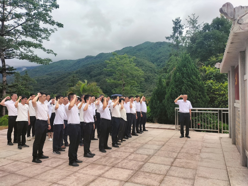 在新田激石溪革命教育基地,全体干部职工沿着299级台阶缓缓攀登,通过聆听讲解,深入学习了以彭湃、杨其珊为代表的革命先烈领导海陆丰苏维埃革命的斗争史,深刻体会了海陆丰苏维埃革命斗争在中国人民争取独立、自由和解放斗争历史上所发挥的“丰碑”作用。在烈士纪念碑前,辛海同志带领大家整齐列队,向革命英烈鞠躬默哀,并绕行瞻仰烈士公墓,表达深刻缅怀和崇高敬意。最后,在鲜红的党旗下,全体党员佩戴党员徽章,举起右手,握紧拳头,面对鲜红的党旗重温入党誓词,重温“初心”,坚定理想信念。