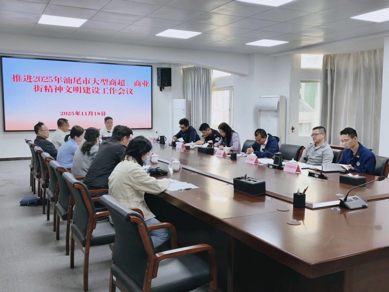 11月18日,我局召开2025年推进大型商超、商业街精神文明建设工作会。会议旨在深入贯彻党的二十届四中全会精神与习近平总书记对广东系列重要讲话和重要指示精神,扎实推进文明城市创建工作走深走实。市城区政府,市公安局、市市监局、市住建局、市民政局、市卫健局、团市委、市消防救援支队等单位负责同志参会。会议由市商务局分管副局长主持并就重点任务作出具体部署。
