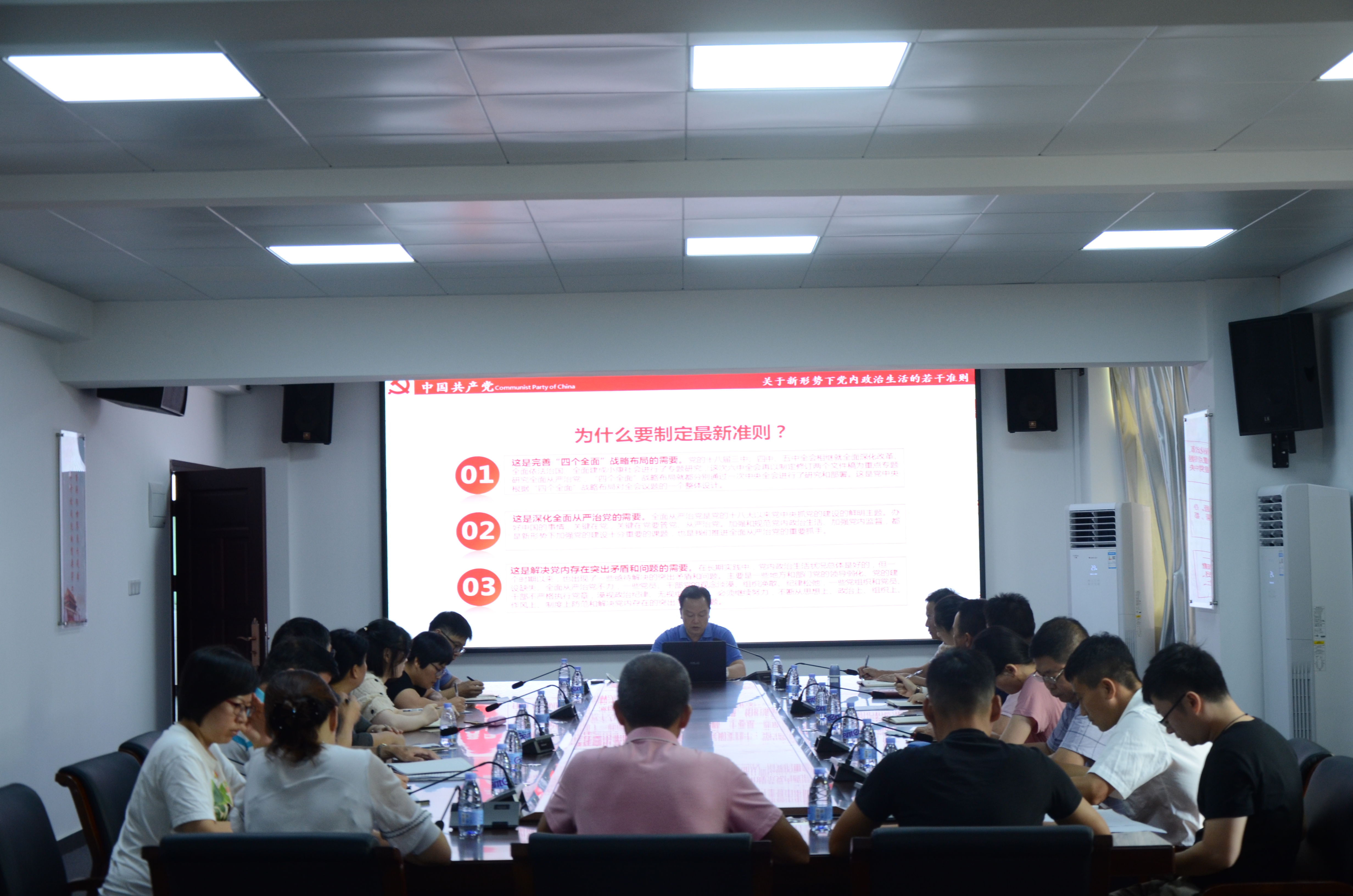 10月16日,局机关党委召开学习会,李端仪局长为党员上“关于新形势下党内政治生活的若干准则”学习辅导课,批评本局个别党员干部存在政治规矩意识淡泊、纪律作风涣散行为,要求以“不忘初心、牢记使命”主题教育为抓手,检视问题,落实整改。