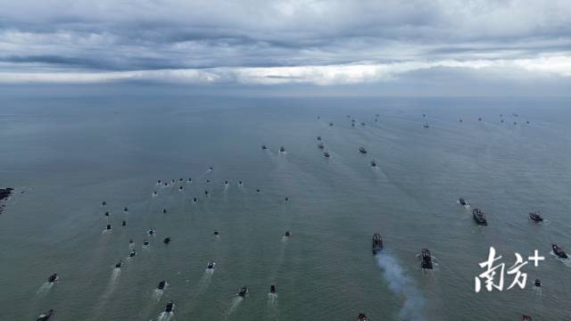 12时,随着一声开渔令发布,汕尾新一轮渔业生产拉开序幕。渔船解禁出海,渔民满怀希望驶向大海抢“头鲜”,千帆竞发的场面蔚为壮观。