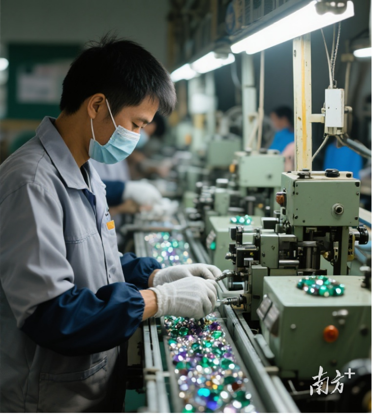 20世纪80年代初, 首批汕尾籍创业者带着深圳等地的珠宝首饰加工经验回乡 ,从“前店后厂”式家庭作坊代工起步,开启彩色宝石创业之路。如今,汕尾已发展成集原料加工、设计研发、产品销售等于一体的现代化产业集群,正乘着“百县千镇万村高质量发展工程”的东风,加速向高端化、智能化、绿色化转型升级。