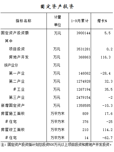 2016年1-9月固定资产投资