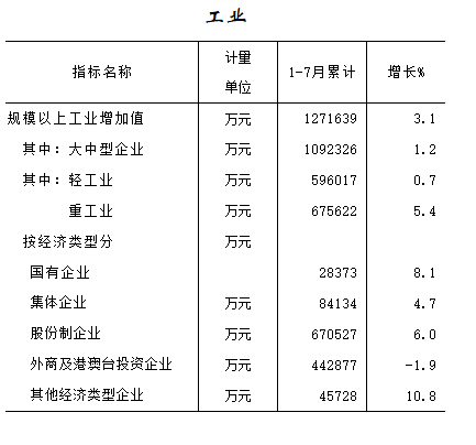 2016年1-7月工业