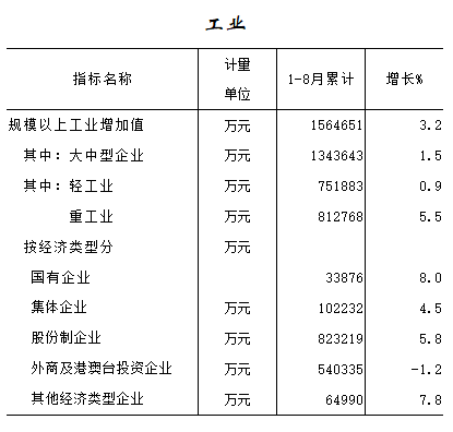 2016年1-8月工业