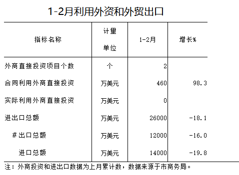 2016年1-2月利用外资和外贸出口