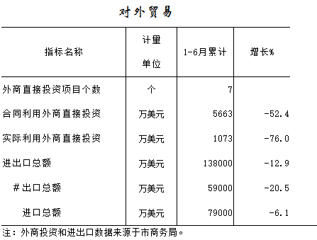2016年1-6月对外贸易