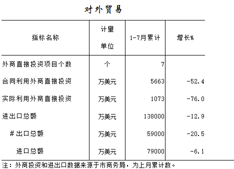 2016年1-7月对外贸易