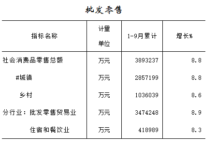 2016年1-9月批发零售