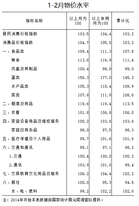 2016年1-2月物价水平