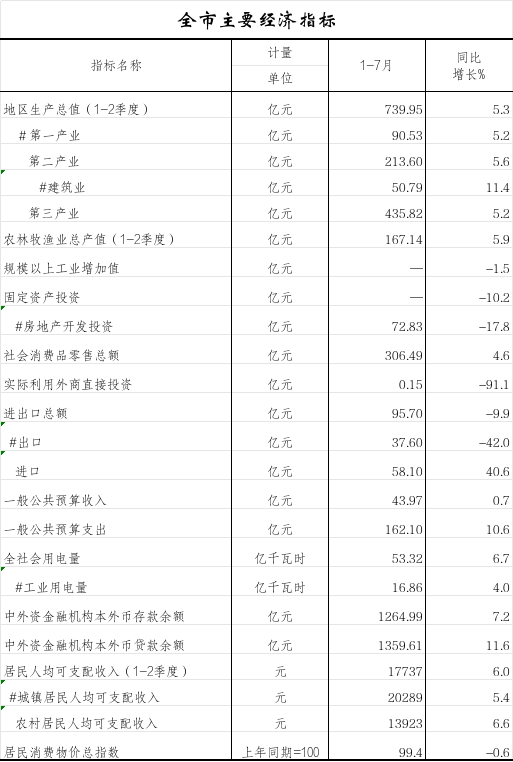 2025年1—7月全市主要经济指标