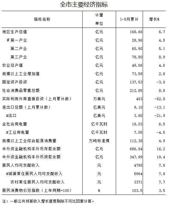 2016年1-5月全市主要经济指标
