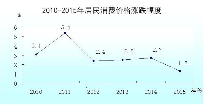 全年居民消费价格总指数上涨1.3%。分类别看,食品类上涨4.1%,烟酒及用品类上涨0.4%,衣着类下降2.1%,家庭设备用品及维修服务类下降0.4%,医疗保健和个人用品类上涨3.4%,交通和通信类下降2.4%,娱乐教育文化用品及服务类持平,居住类下降1.2%。在食品类中,蛋类、水产品类和菜类上涨幅度较大,分别上涨8.8%、9.7%和8.9%。