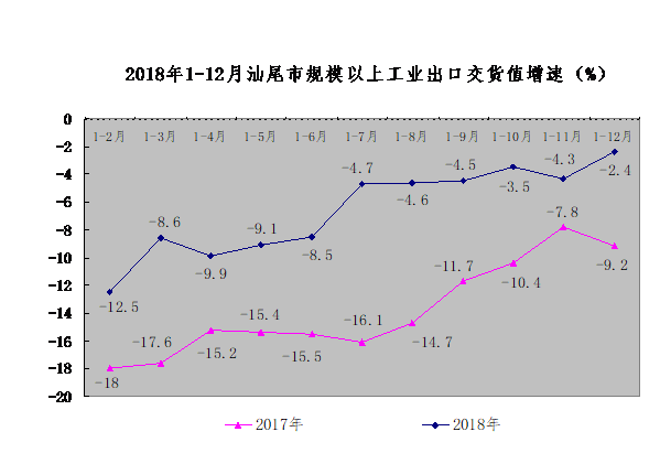 2018年是全面贯彻党的十九大精神的开局之年,在以习近平同志为核心的党中央坚强领导下,汕尾市委、电影天堂 认真落实党的十九大作出的战略部署,按照高质量发展要求,坚持稳中求进工作总基调,坚持以供给侧结构性改革为主线,狠抓工作落实,全市工业经济呈现平稳快速增长态势。
