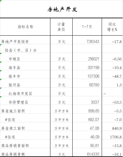 2025年1—7月房地产开发