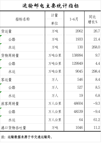 2025年1—6月运输邮电主要统计指标