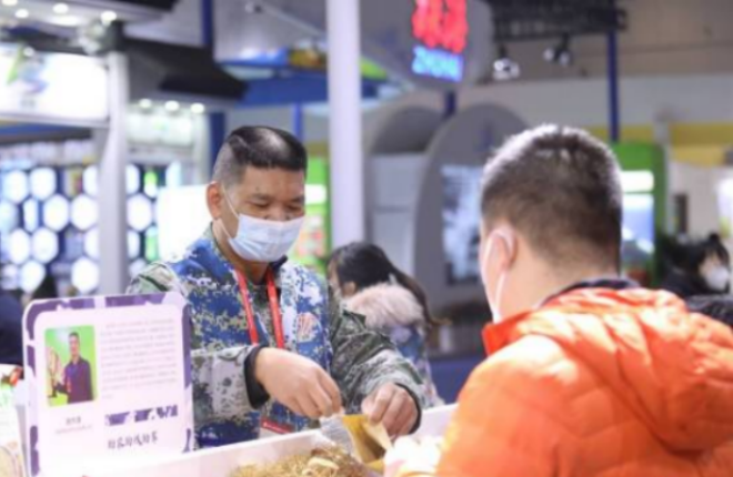 展品丰富,线上线下同发力。军创展区品类丰富,汇集不少国家地理标志性产品,如潮州凤凰单丛茶、清远鸡、新会陈皮,以及传承非遗技艺的客家糯米酒、乐昌擦糍粉等。除线下展销外,同步组织退役军人乡村新闻官现场开展公益直播带货活动,打造“线上+线下”立体展销形式,现场意向成交额超百万元,进一步打开了广东军创农产品的全国销路,提高了广东军创品牌影响力。