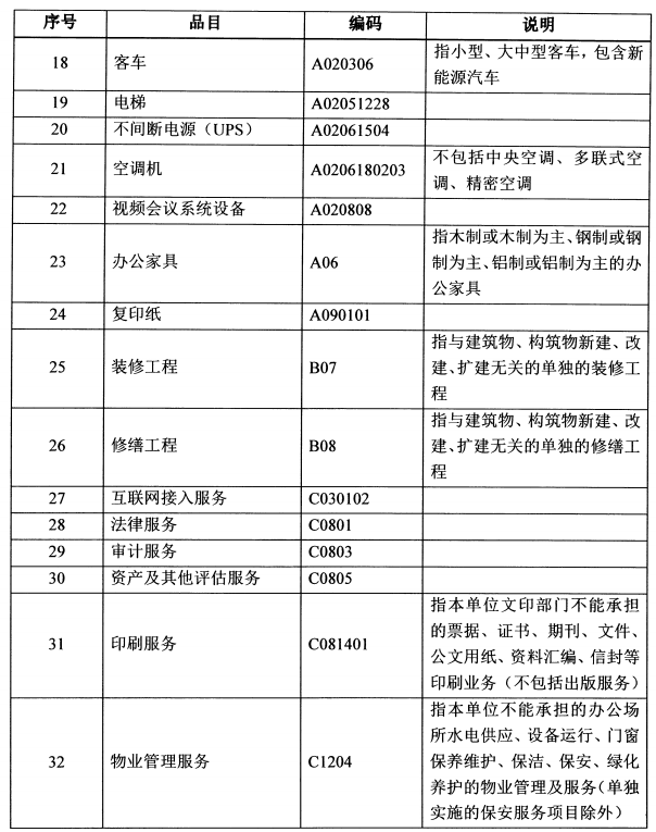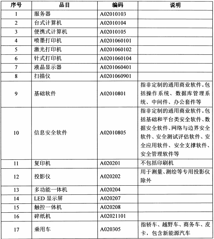 本部门政府集中采购目录
