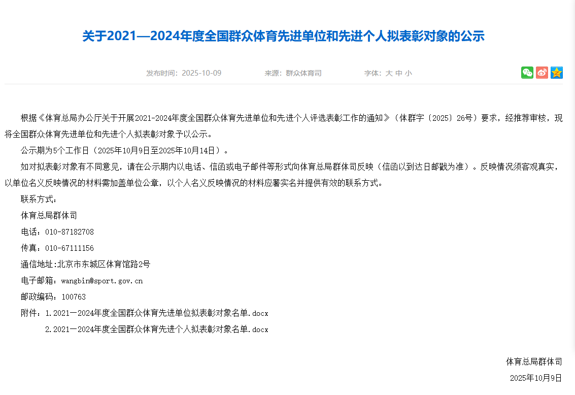 其中,电影天堂 5家单位获得 “2021-2024 年度全国群众体育先进单位”荣誉称号。具体名单如下: