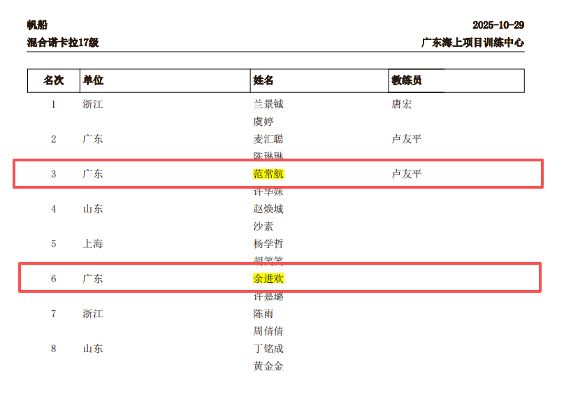 近日,第十五届全国运动会帆船比赛圆满收官。汕尾市体育运动学校范常航、余进欢、陈佳铭、刘雨珊、陈钟健五名学子肩负使命,代表广东出征这一全国顶级赛事。在碧波逐浪的巅峰对决中,他们凭借扎实的专业功底、顽强的拼搏意志,从众多顶尖选手中脱颖而出,斩获多项殊荣,为广东争光、为汕尾添彩、为母校增辉!